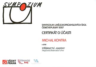Po prvýkrát sa naša škola zúčastnila Sympózia umeleckopriemyselných škôl Českej republiky v Turnove. Aj tu sa ukázalo, že remeslo má zlaté dno. Nášmu žiakovi Michalovi Kontrovi z 3.B pod vedením p. majsterky Ely Žeňuchovej udelil ocenenie Granát DUV Turnov za najlepší umelecký objekt s názvom Ona a život. Podporiť ich bol aj náš p. riaditeľ Mgr. Marek Balogh.
