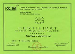 školu reprezentovala žiačka A. Fedorová z III.A triedy, ktorá