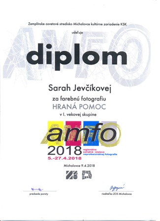 Získala diplom a ocenenie za fotografiu s názvom „Hraná