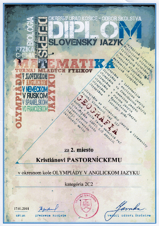 v anglickom jazyku. Našu školu reprezentoval žiak IV.A triedy