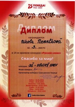 19. februára 2020 sa konalo krajské kolo súťaže Ruské slovo.