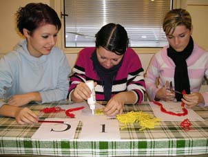 V stredu 30. novembra 2005 p. uč. J. Javorská a p. uč. Piroščáková pripravili pre dievčatá prvých ročníkov odboru kaderník súťaž v príprave účesov, ktoré dievčatá pripravovali z vlny a lepili na papier. Aj touto hravou formou sa naše žiačky pripravujú na svoje budúce povolanie. Vlastnej kreativite sa medze nekládli. |