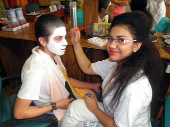 HALOWEEN PÁRTY Dňa 18.10. 2013 žiaci 2. a 3. ročníka odboru kaderník a 4. ročníka odboru kozmetik preukázali svoje tvorivé odborné zručnosti zhotovovaním účesov a vizáže s jesennou a halloweenskou tematikou. Pod vedením majsteriek odbornej výchovy žiaci využili svoje znalosti a zručnosti, tvorivosť, nápady a fantáziu, ktoré vkladali do svojich prác. Skrášlili priestory školskej dielne prvkami danej tematiky pripomínajúcej jeseň, sviatok dušičiek a halloween, čo nám bude zdobiť prevádzku dielne počas jesenného obdobia. Žiaci ukázali svoju odbornosť nápaditými účesmi a vizážou na vynikajúcej úrovni. Táto halloweenska akcia nám oživila a spríjemnila jesenné dni a splnila svoj účel - podporiť žiacku aktivitu v odbornej oblasti.