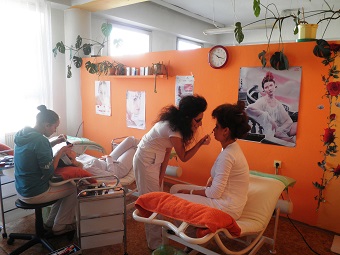 Žiačky odborov kaderník a vlasová kozmetika predviedli svoje zručnosti a obyvateľom Charitného domu prof. Hlaváča v Michalovciach nezištne upravili vlasy.