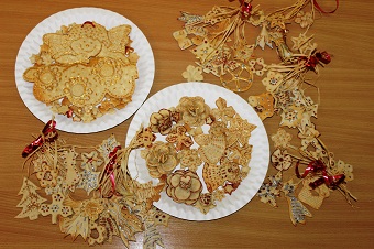 VIANOČNÉ DEKORÁCIE V období adventu sme pripravovali vianočné dekorácie z rozličných materiálov- z odličovacích tampónov, stužiek a cesta, ktoré sme potom s láskou darovali seniorom v Domove dôchodcov na Hollého ulici a v Charitnom dome prof. Hlaváča v Michalovciach.