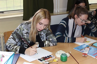 RUSKÝ FILM V ŠKOLE Začiatkom novembra si žiaci prvého ročníka spestrili hodiny ruského jazyka zapojením sa do akcie Ruský film v škole. Pozreli si rozprávku "Вовка в тридевятом царстве", vyplnili kvíz a nakreslili najzaujímavejšie scénky z filmu. Najkrajšie výtvarné práce boli zaslané do súťaže.